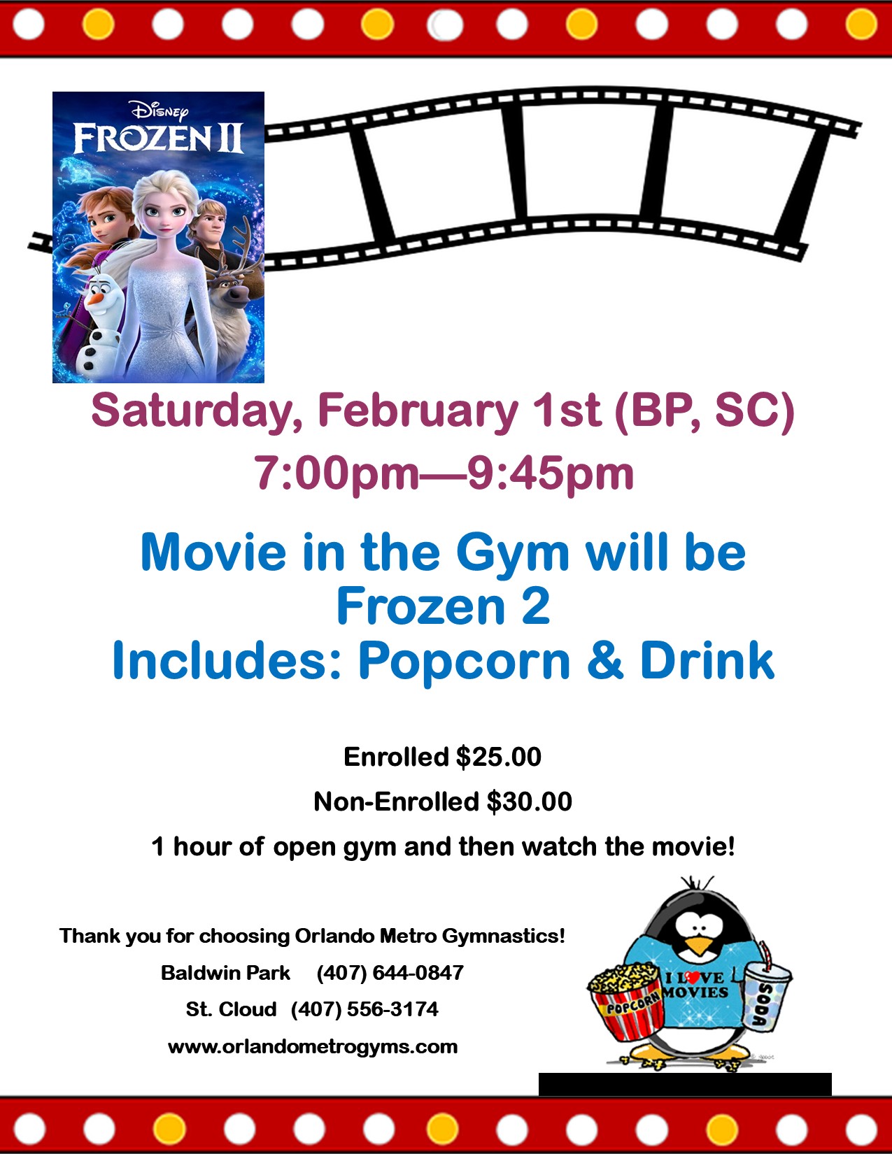 Movie in the Gym – BP, SC Only